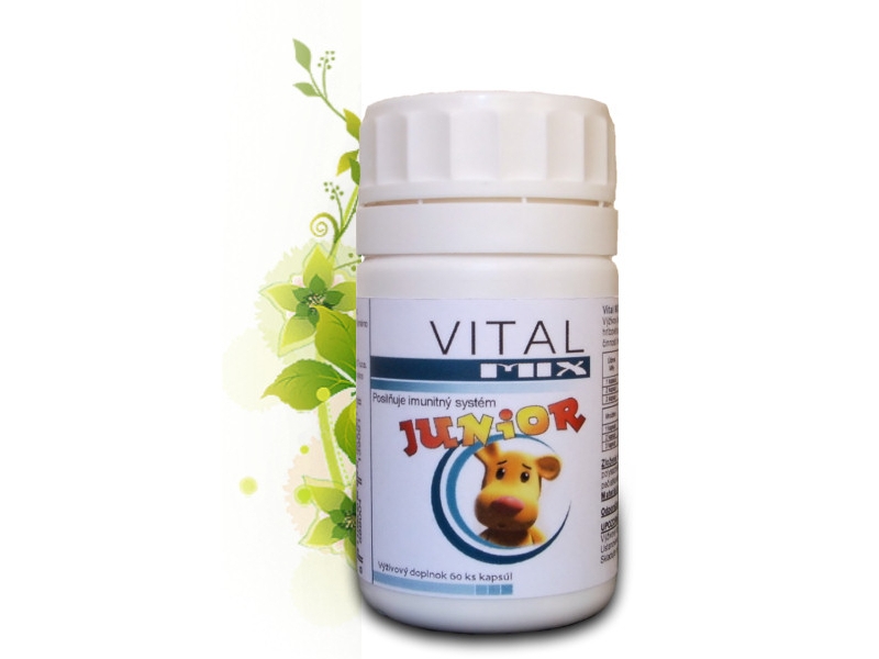 Jedna kapsula obsahuje zhustený výťažok troch druhov imunoglukánov a prirodzený výťažok z aceroly. Vo výťažku z aceroly nájdeme v prirodzenej forme najdôležitejšie vitamíny, minerálne látky a flavonoidy, ktoré napomáhajú prirodzenému vstrebávaniu extraktov z polysacharidov. Vo výťažku z Aceroly je minimálne 17% prirodzeného vitamínu C. Užívanie Vital MIX junior-u doporučujeme deťom, ktoré sa cítia ohrozené v dôsledku chrípkových a iných infekčných ochorení, alebo genetickej náchylnosti. Ich užívanie je vhodné aj pre mladých športovcov.